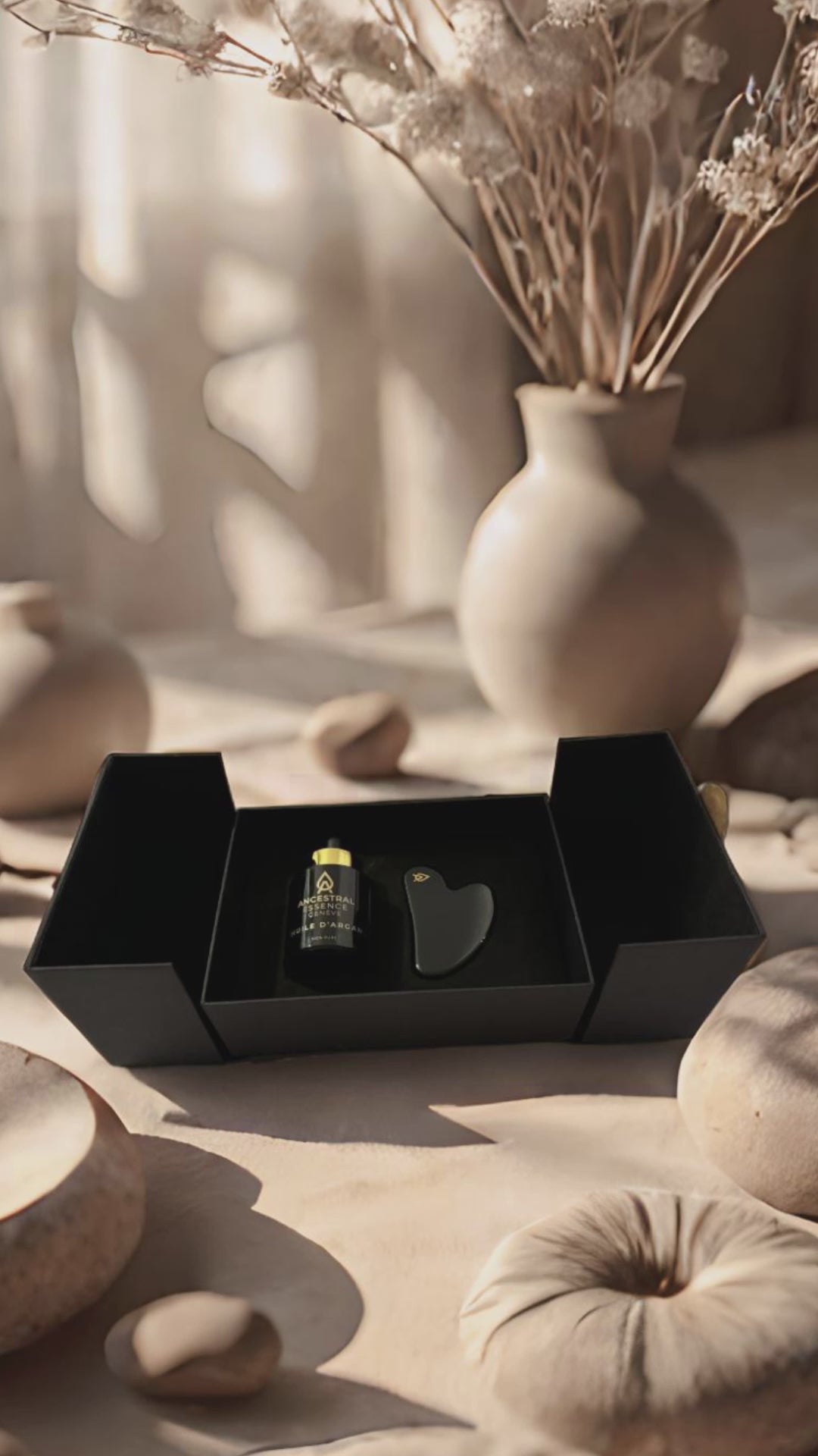 Coffret Éclat Naturel: Huile d’Argan & Gua Sha en Obsidienne Noire